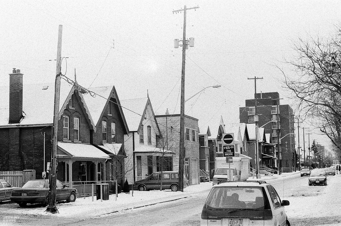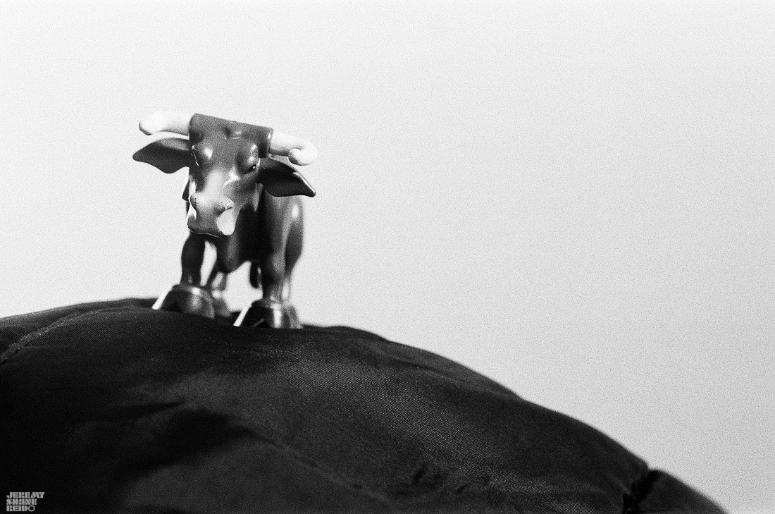 This might be my okay-ist roll that I have developed. Nothing spectacular and definitely nothing that I remember shooting. A random bull statuette, a blurry picture of my friends dog, a winter scene of a creek, one random picture of a downtown street and a few shots of a protest march down Rideau street with people carrying fake coffins. I wish I remembered it but I don't. That is just the way it goes sometimes.